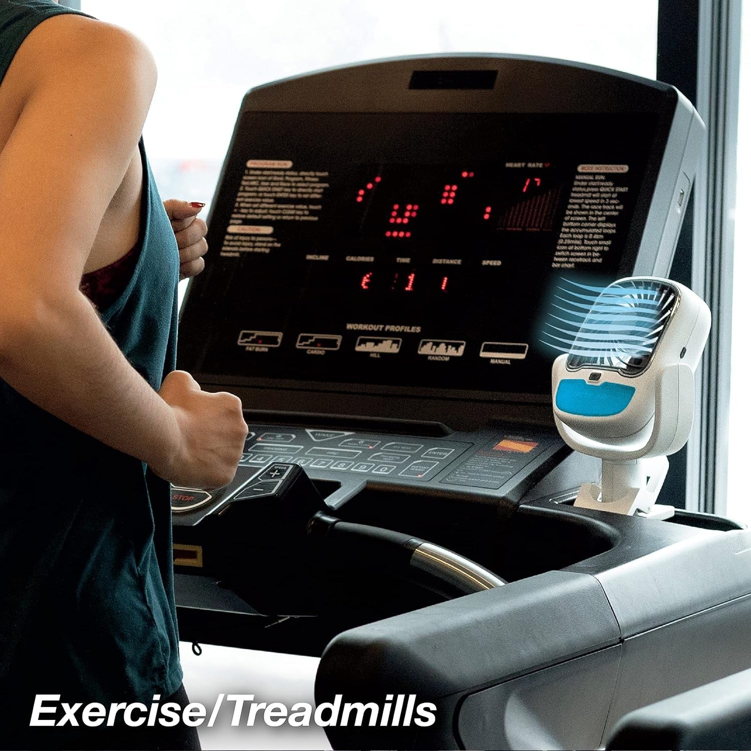 - Easy to Use - Simply fill the water reservoir, clamp it to your table or treadmill, turn the swiveling head to your liking, and switch it on. With its quiet fan operation, you can work or relax in peace.